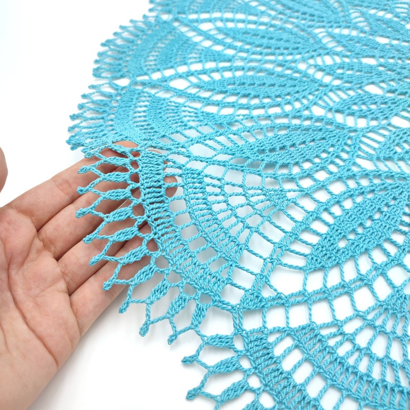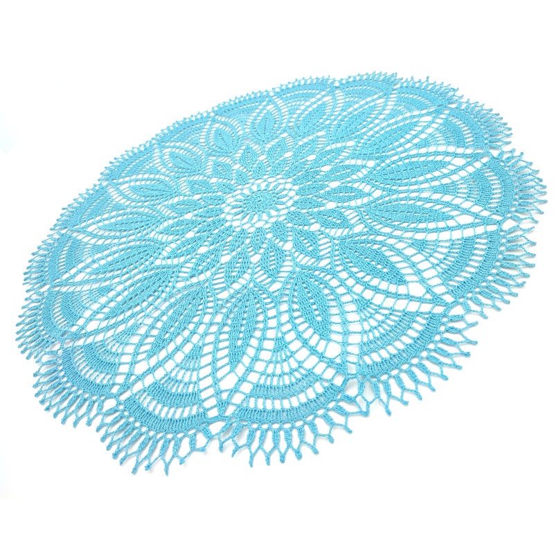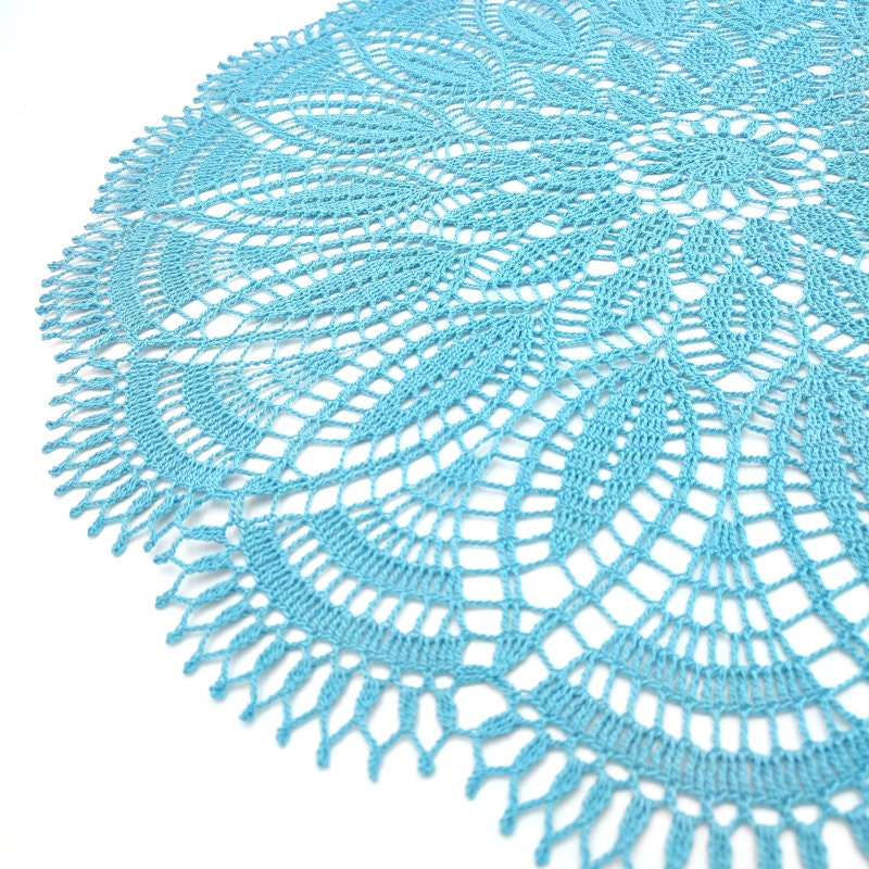 Large mint blue colour doily or small crochet tablecloth for a round coffee table