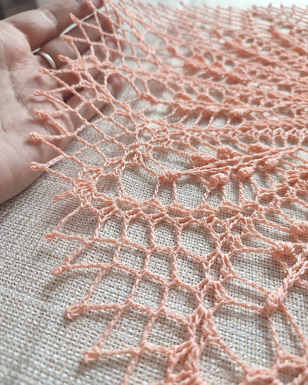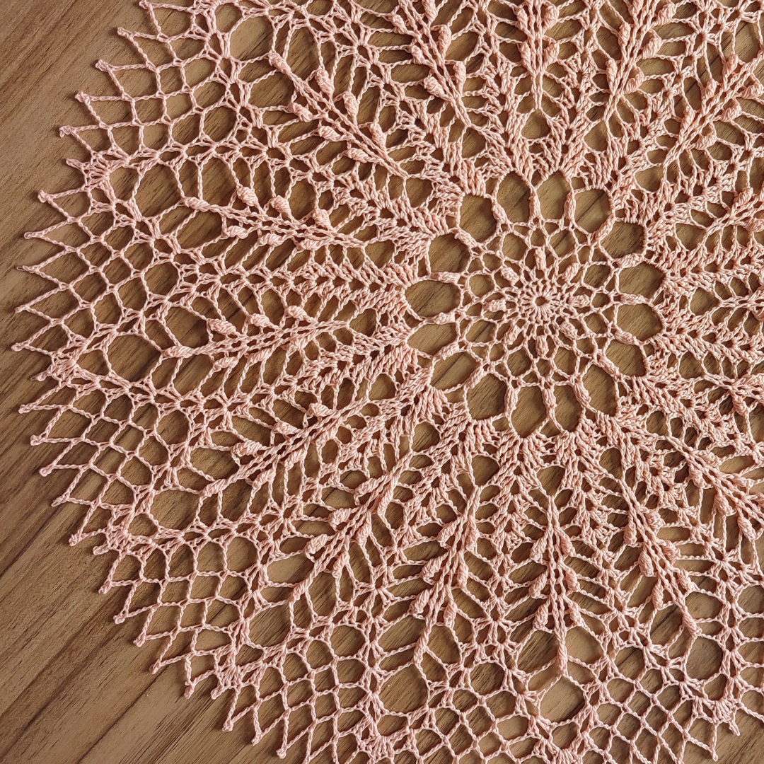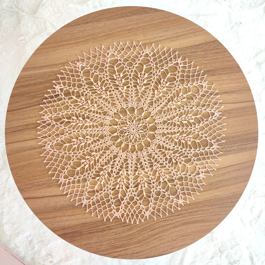 It's 42 cm diameter, made with 100% cotton and 1.5mm hook in beautiful coral colour.
