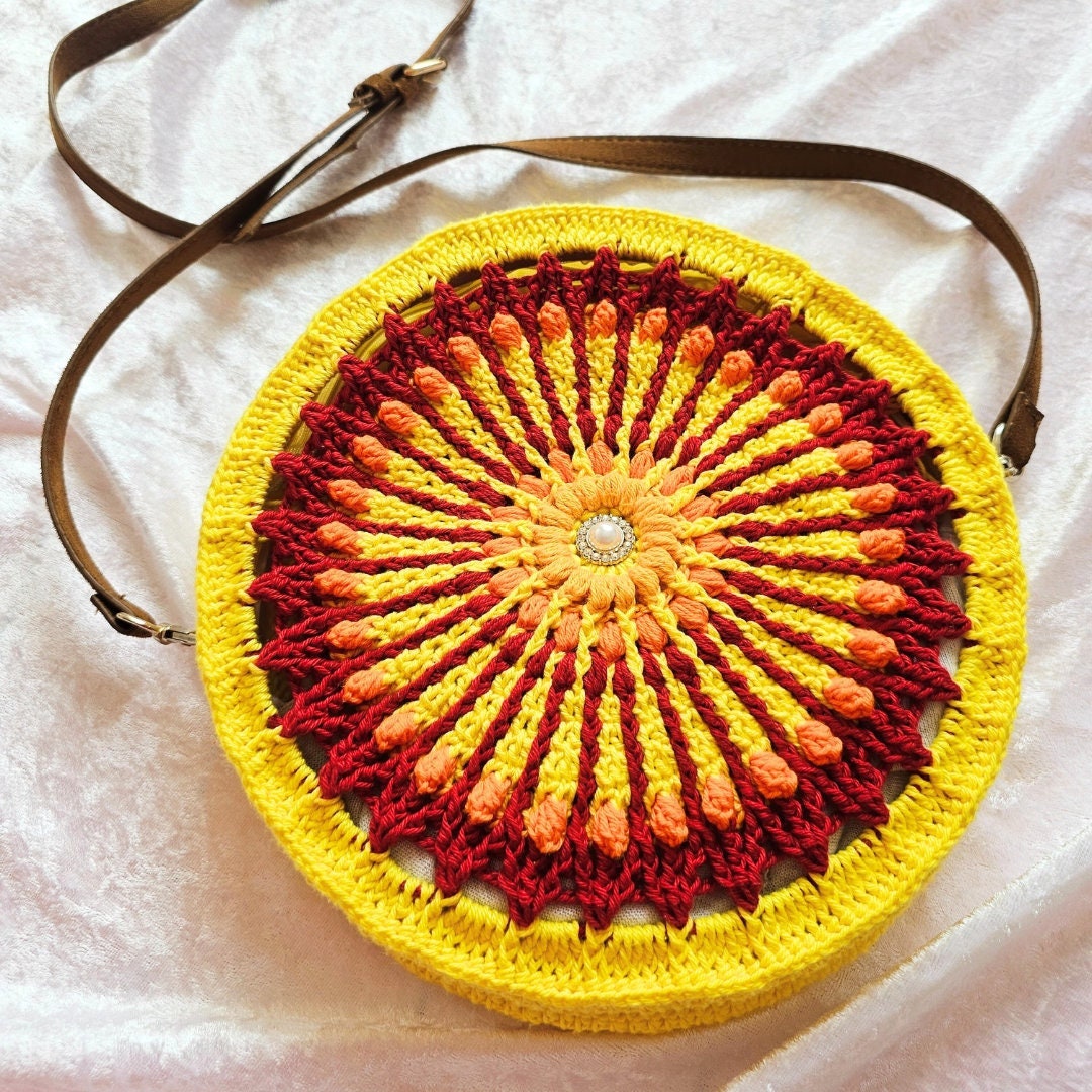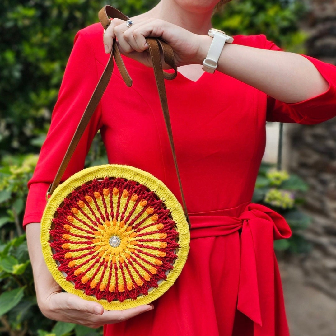 Round crochet handbag PDF pattern with pictures and a chart