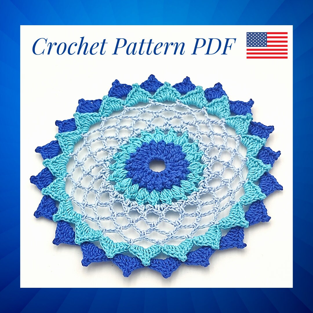 Textured coaster crochet pattern PDF, chart and description for a 3D small doily, easy mini mandala tutorial