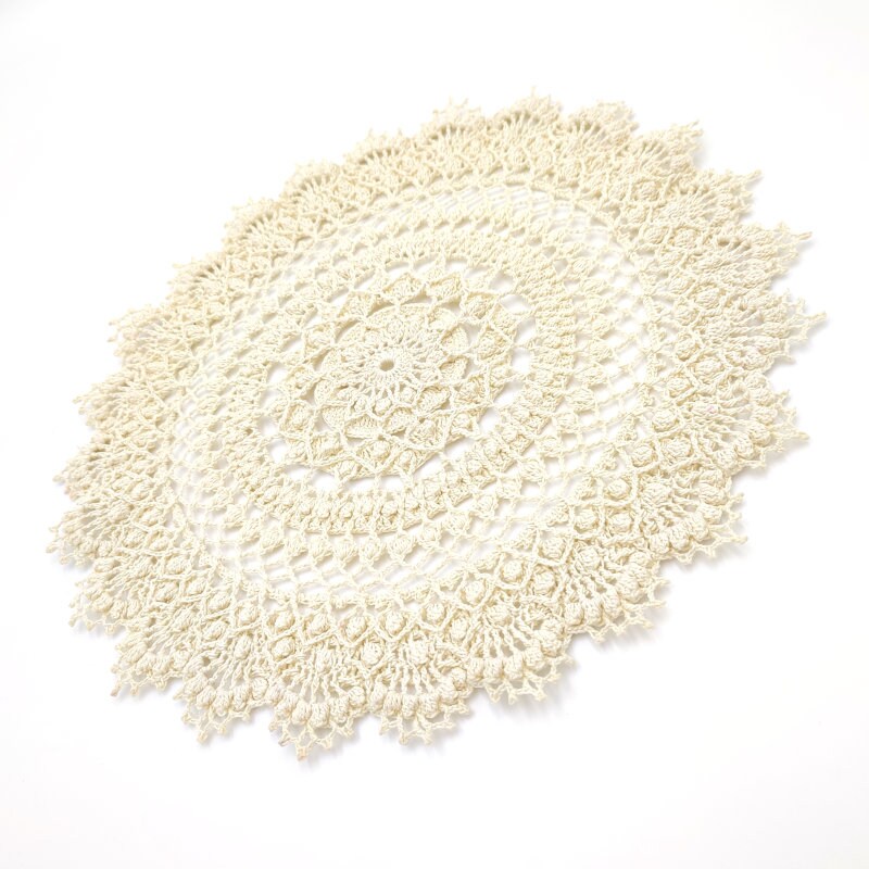Gorgeous ivory doily with 3D elements, delicate handmade centrepiece, perfect gift from France
